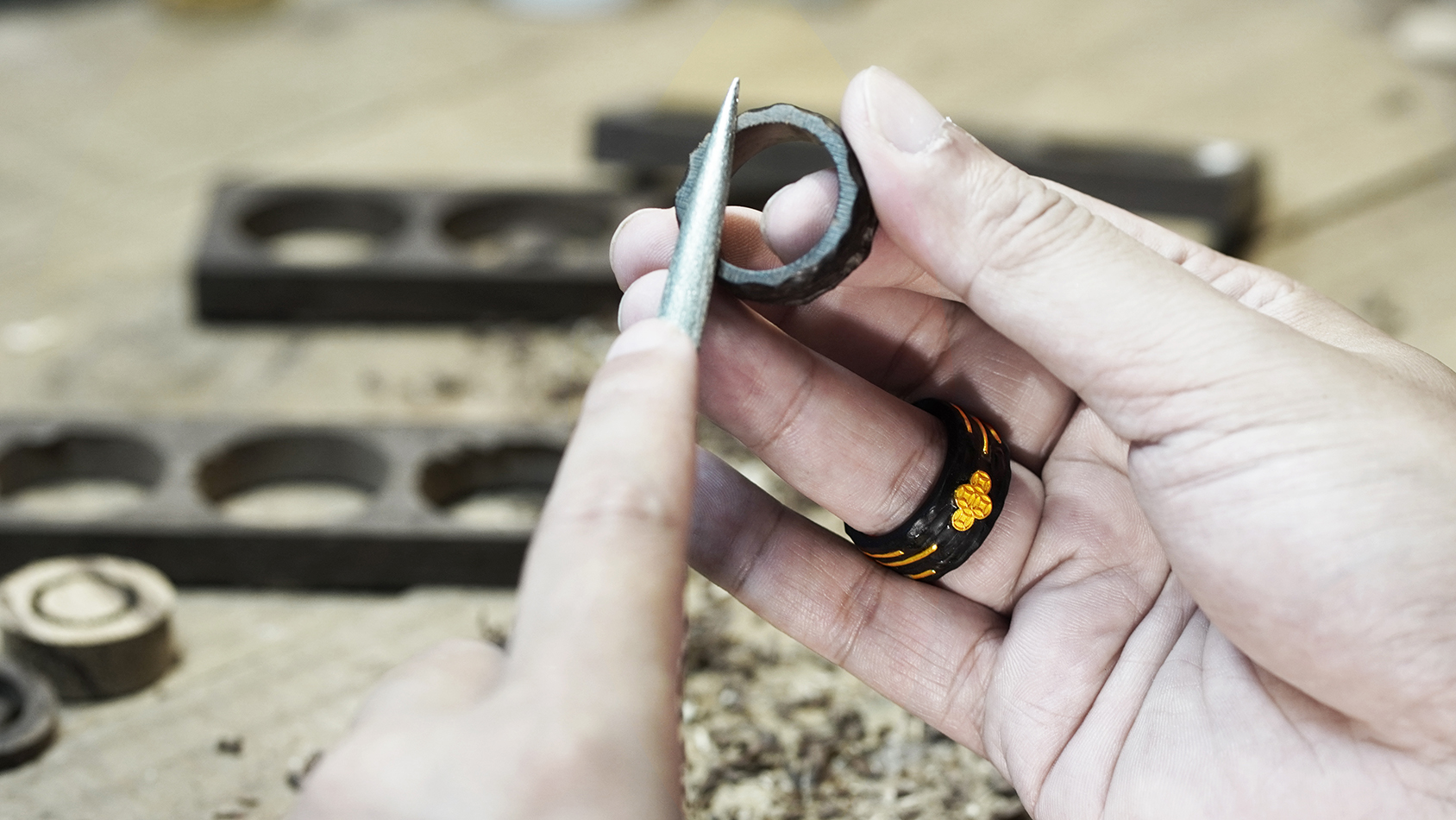 匠者手工打造,機器無可取代,平均2~3製造一只柴金戒。